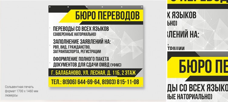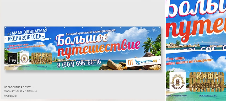 Мы предлагаем стандартную послепечатную обработку баннеров: подрезка, установка люверсов, склейка полотен, проклейка карманов. Монтаж осуществляется силами заказчика или стороних монтажных бригад.