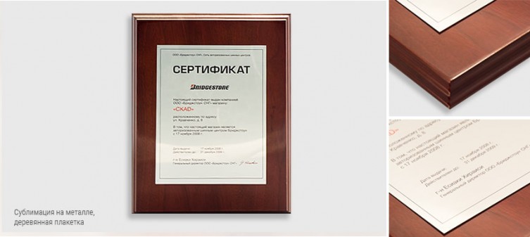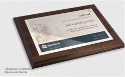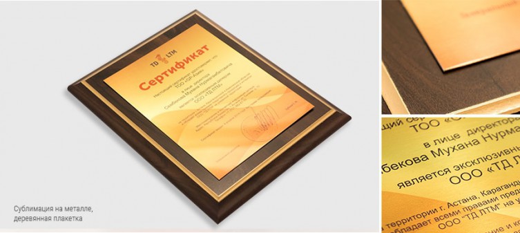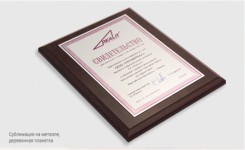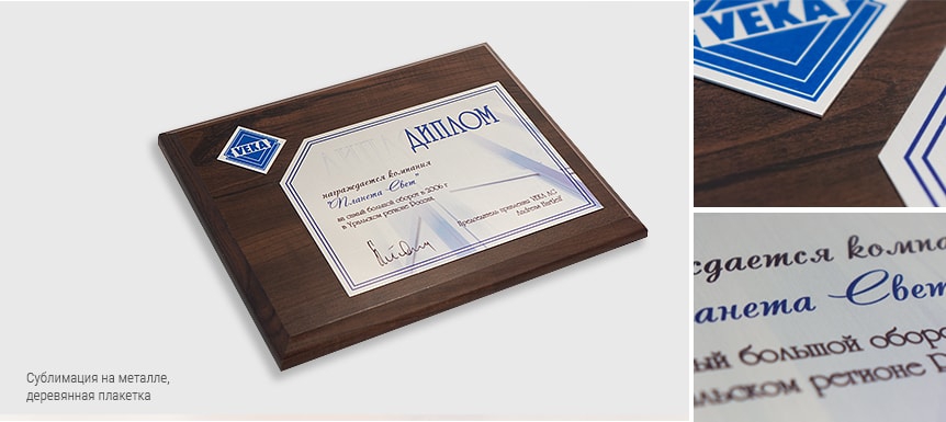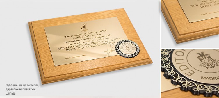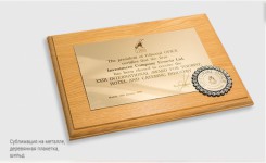 Наградные плакетки изготавливаются из деревянной основы и металлической пластины, на которую наносится надпись путём лазерной гравировки, сублимации или УФ-печати.