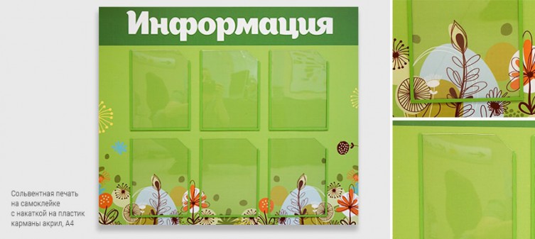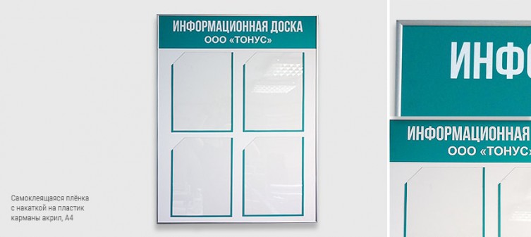 Стенды с пластиковыми карманами необходимы на любом производстве, торговой точке или образовательной организации. Пластиковые карманы имеют разчные размеры для стандартных листов бумаги - A4, A5 или индивидуального размера.